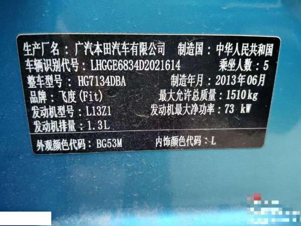初次登记日期 2013-11-29 车辆名称 本田 飞度