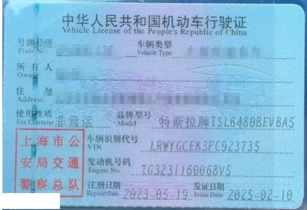 初次登记日期 2023-05-19 车辆名称 特斯拉 Model