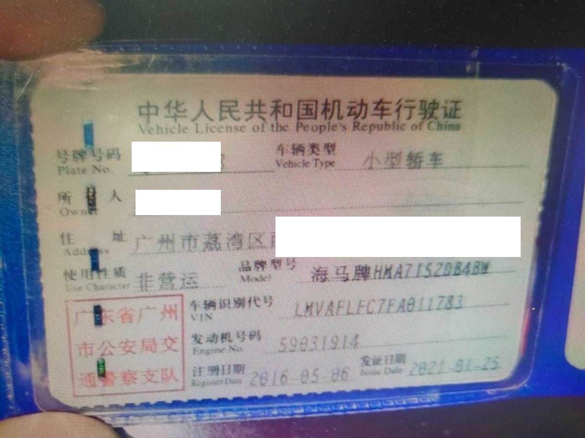 车牌号 粤****** 品牌 海马