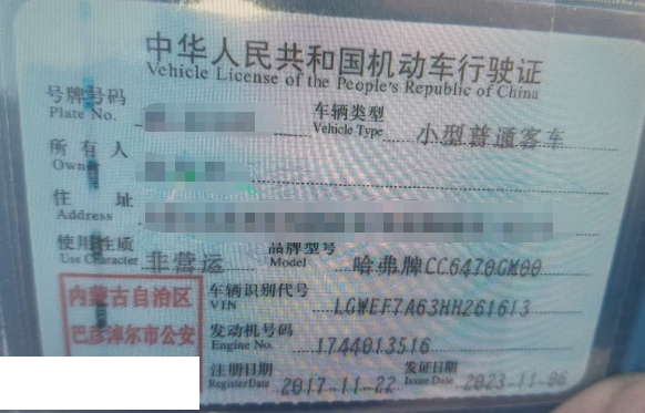 车牌号 蒙****** 品牌 哈弗