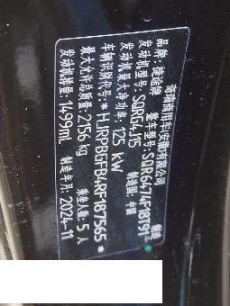 底盘号码 HJRPBGFB4RF187565 变速箱类型 自动