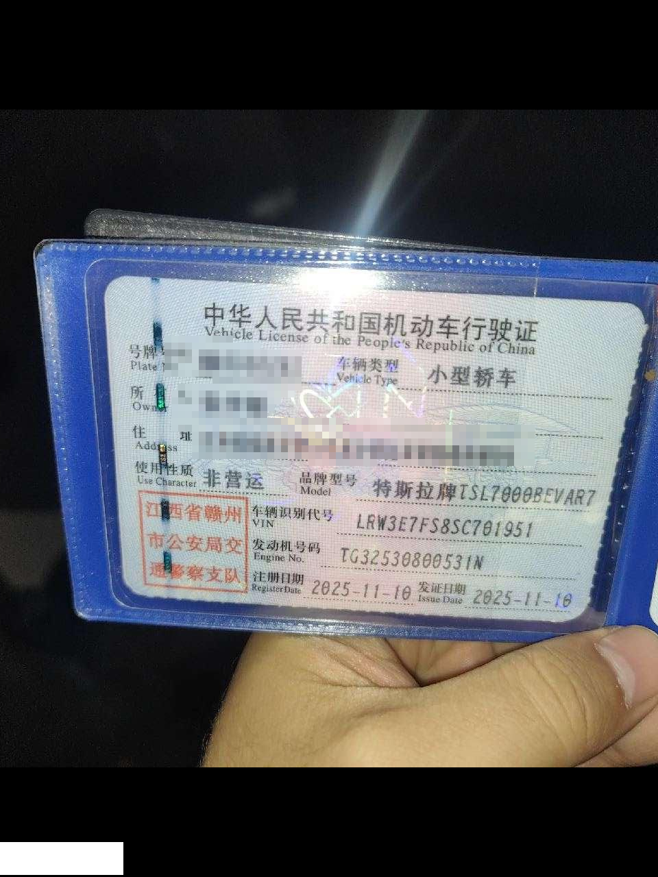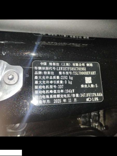 初次登记日期 2025-11-10 车辆名称 特斯拉 Model