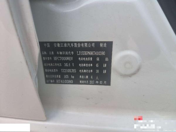 初次登记日期 2017-05-24 车辆名称 江汽集团 江淮iEV6E