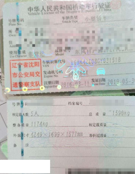 车辆归属地 辽宁省沈阳市 车辆停放仓库 辽宁省葫芦岛