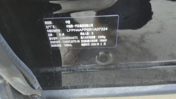 底盘号码 LFPH4APP8R1A07224 变速箱类型 手自一体