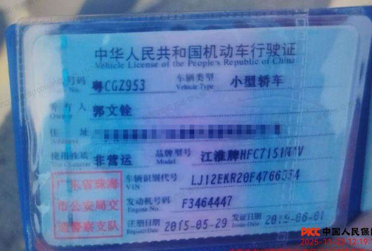 车辆归属地 广东省珠海市 车辆停放仓库 广东省珠海市珠海市
