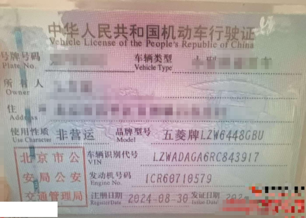 初次登记日期 2024-08-30 车辆名称 五菱汽车 五菱宏光V