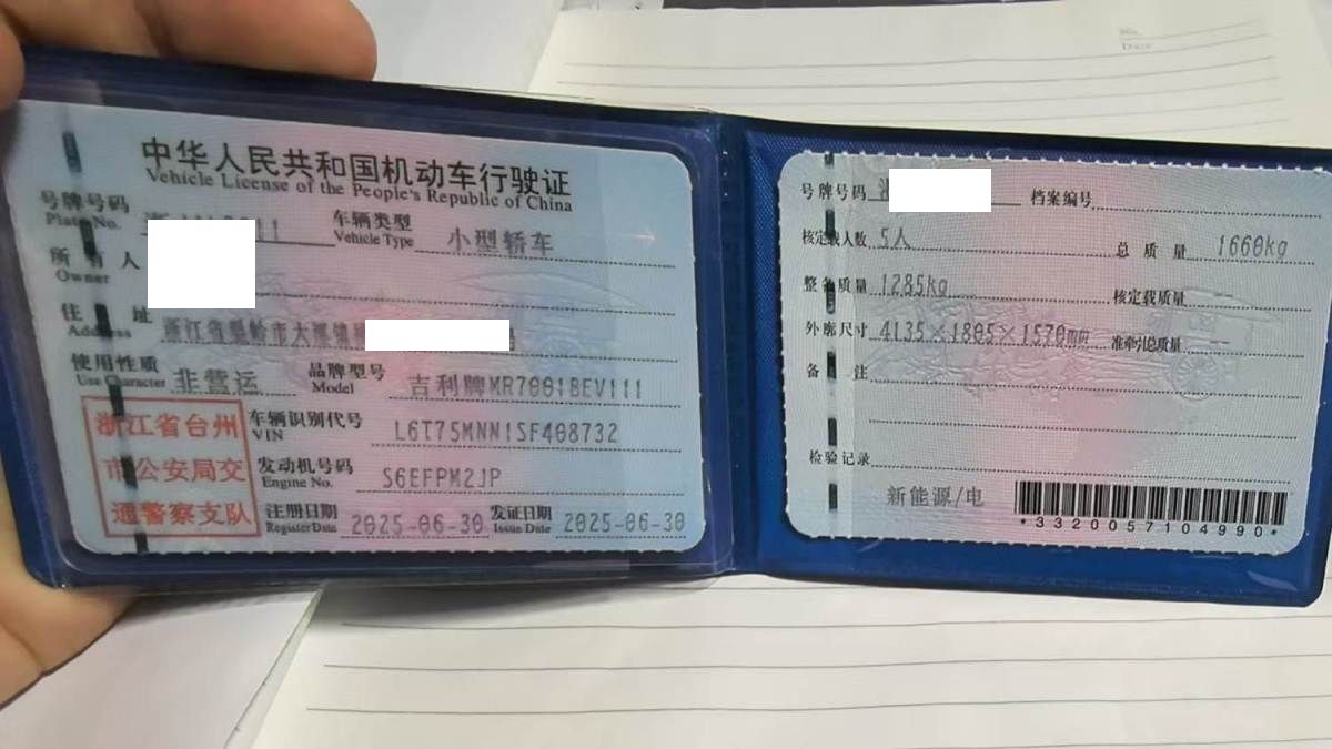 初次登记日期 2025-06-30 车辆名称 吉利银河 星愿