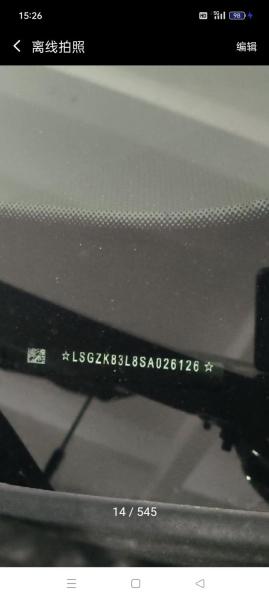 底盘号码 LSGZK83L8SA026126 变速箱类型 手自一体