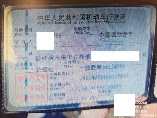 车牌号 浙****** 品牌 路虎