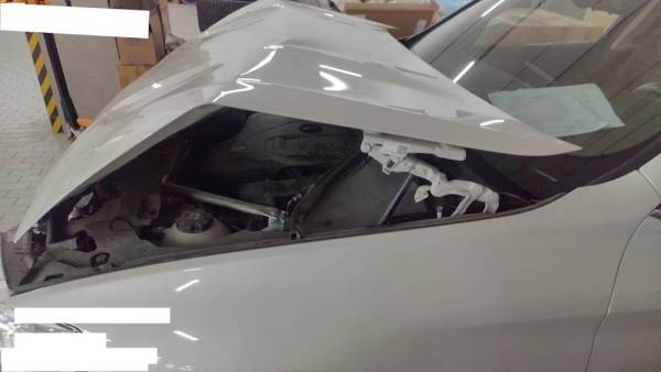 车辆前部受损,损失照片已上传,二次事故不详,后期不准以此进行二次询残。