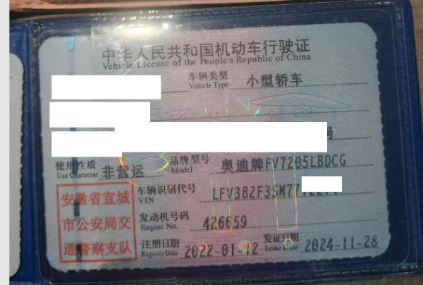 车牌号 皖****** 品牌 奥迪