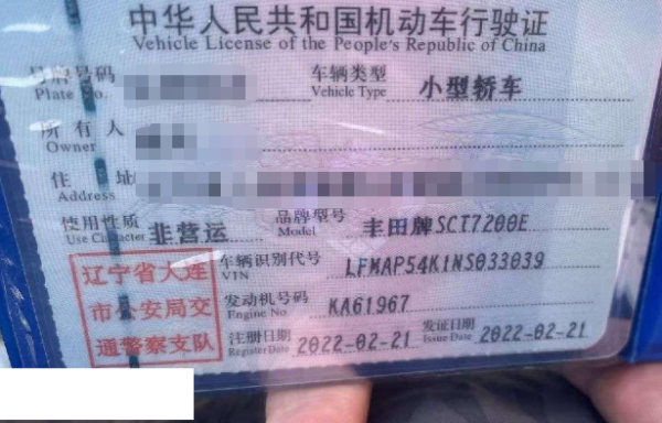 车牌号 辽****** 品牌 丰田