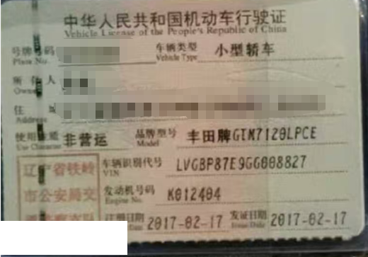 车牌号 辽****** 品牌 丰田