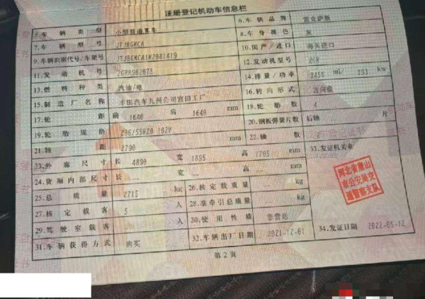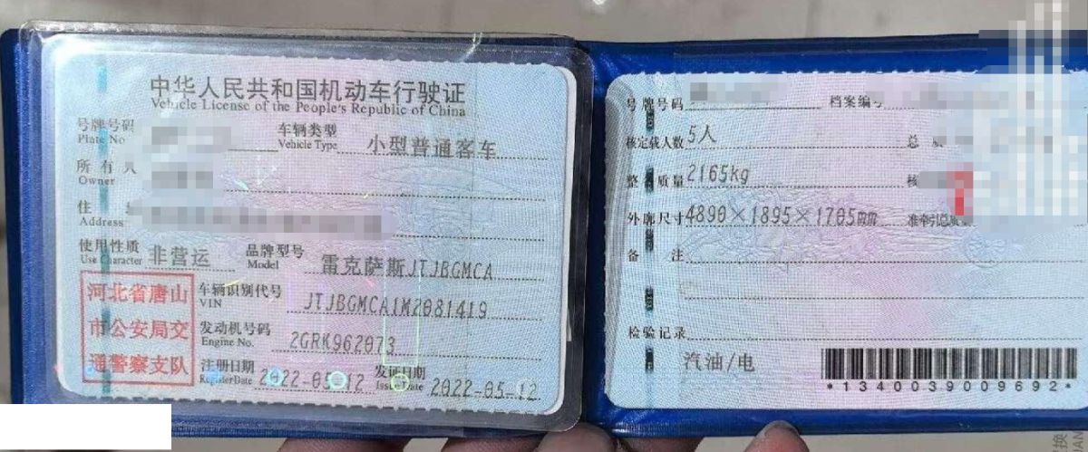 初次登记日期 2022-05-12 车辆名称 雷克萨斯