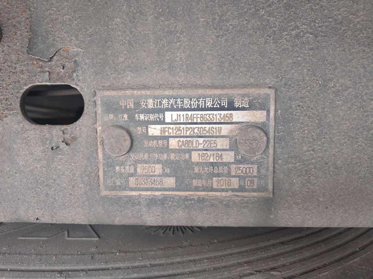 初次登记日期 2016-09-22 车辆名称 江淮 格尔发
