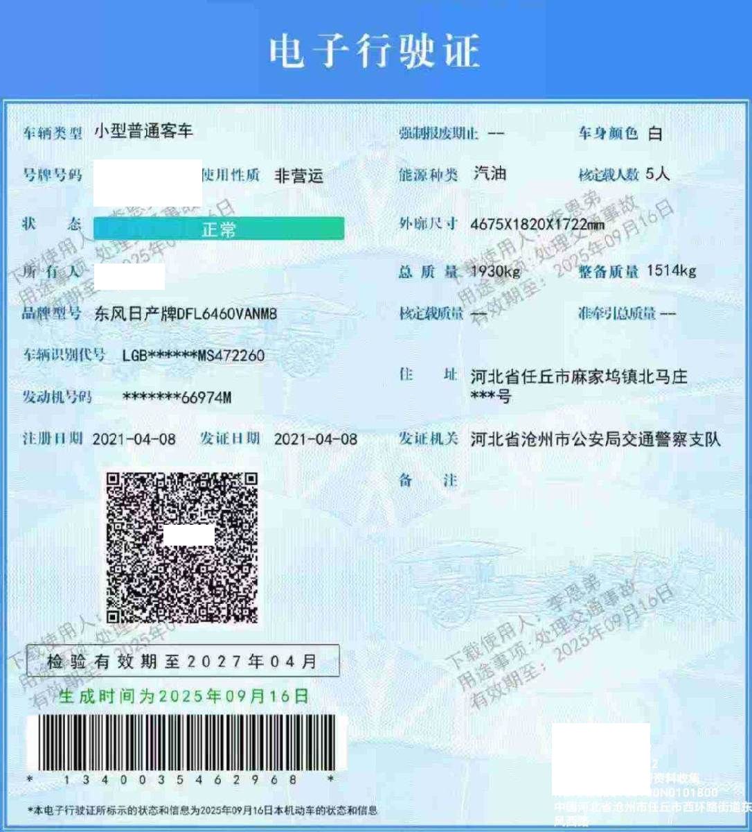 车牌号 冀****** 品牌 日产