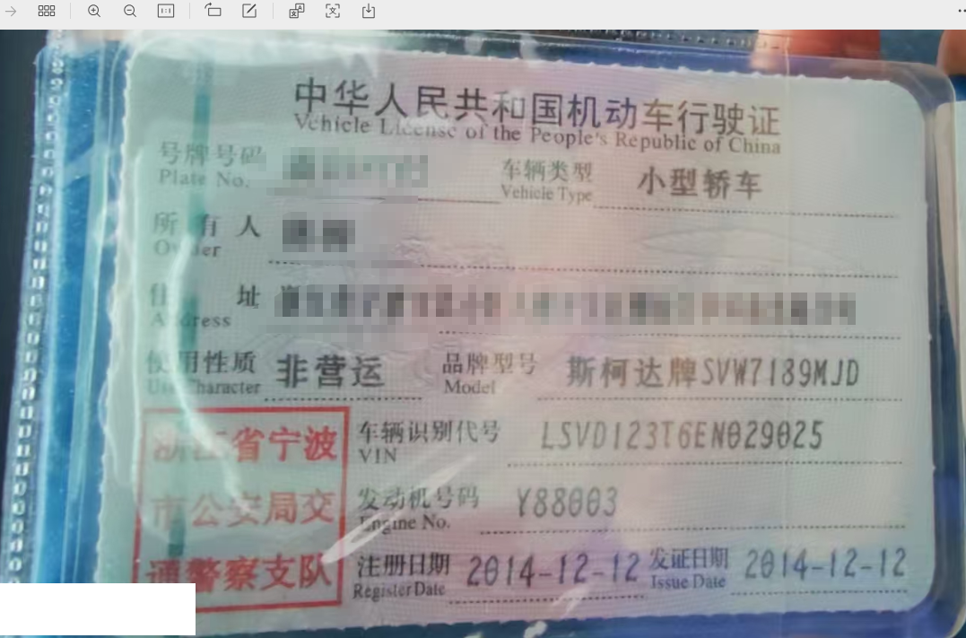 车牌号 浙****** 品牌 斯柯达
