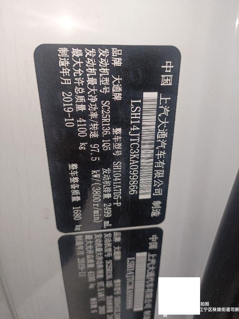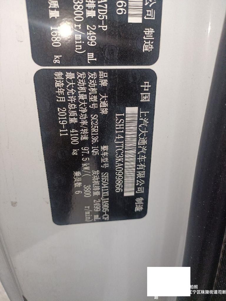 初次登记日期 2020-09-21 车辆名称 上汽大通MAXUS 新途V80