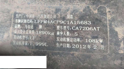 车牌号 辽****** 品牌 马自达