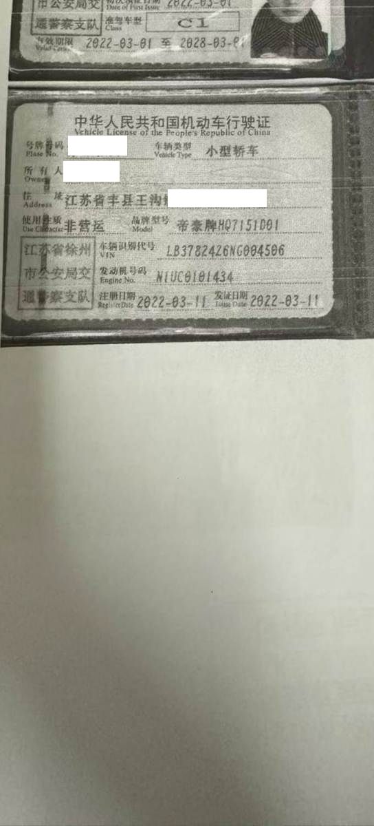 初次登记日期 2022-03-11 车辆名称 吉利汽车 帝豪