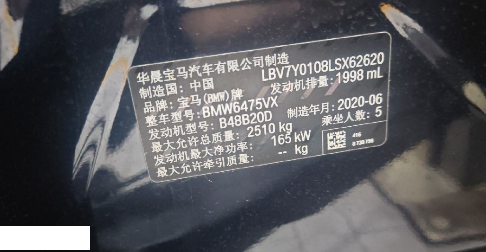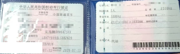 初次登记日期 2020-07-15 车辆名称 宝马X3