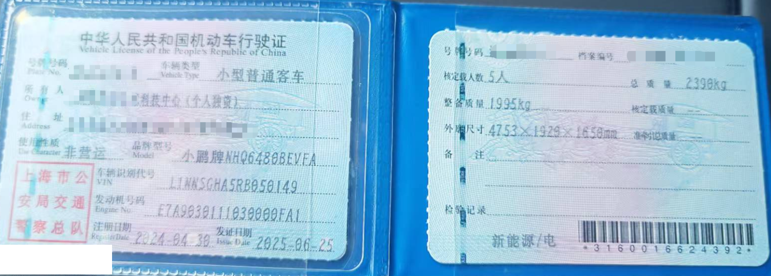 车牌号 沪****** 品牌 小鹏