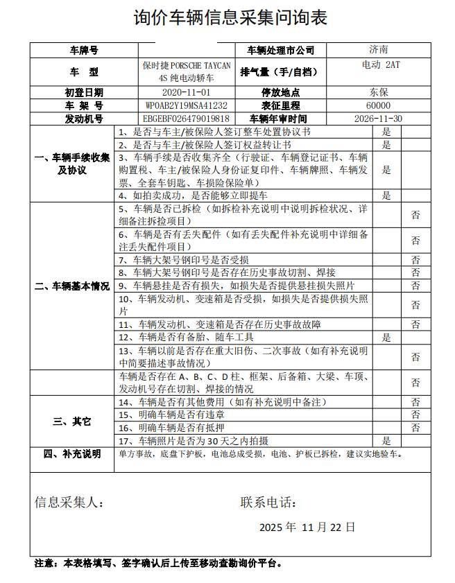 拍卖编号 N202511250903 事故类型 碰撞车