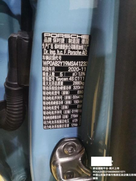 初次登记日期 2021-03-18 车辆名称 保时捷 Taycan
