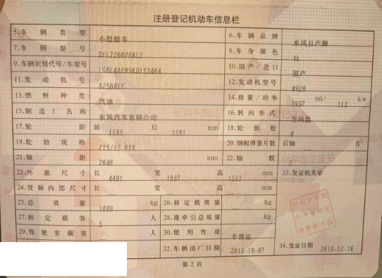 初次登记日期 2019-12-16 车辆名称 日产 逍客