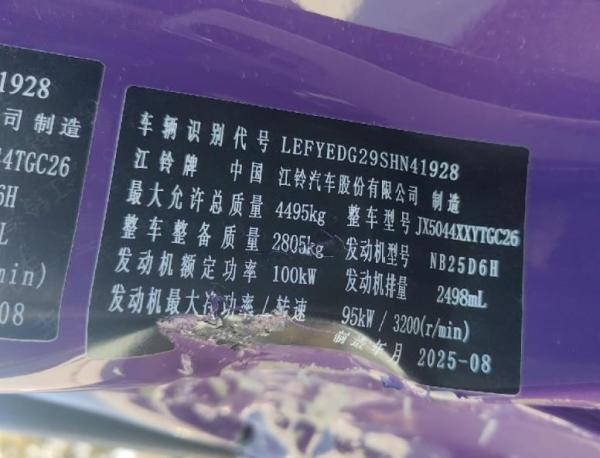 初次登记日期 2025-08-31 车辆名称 江铃 凯运