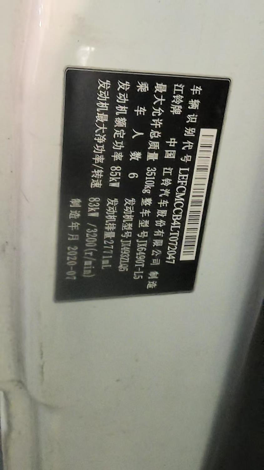 初次登记日期 2020-09-28 车辆名称 江铃 特顺