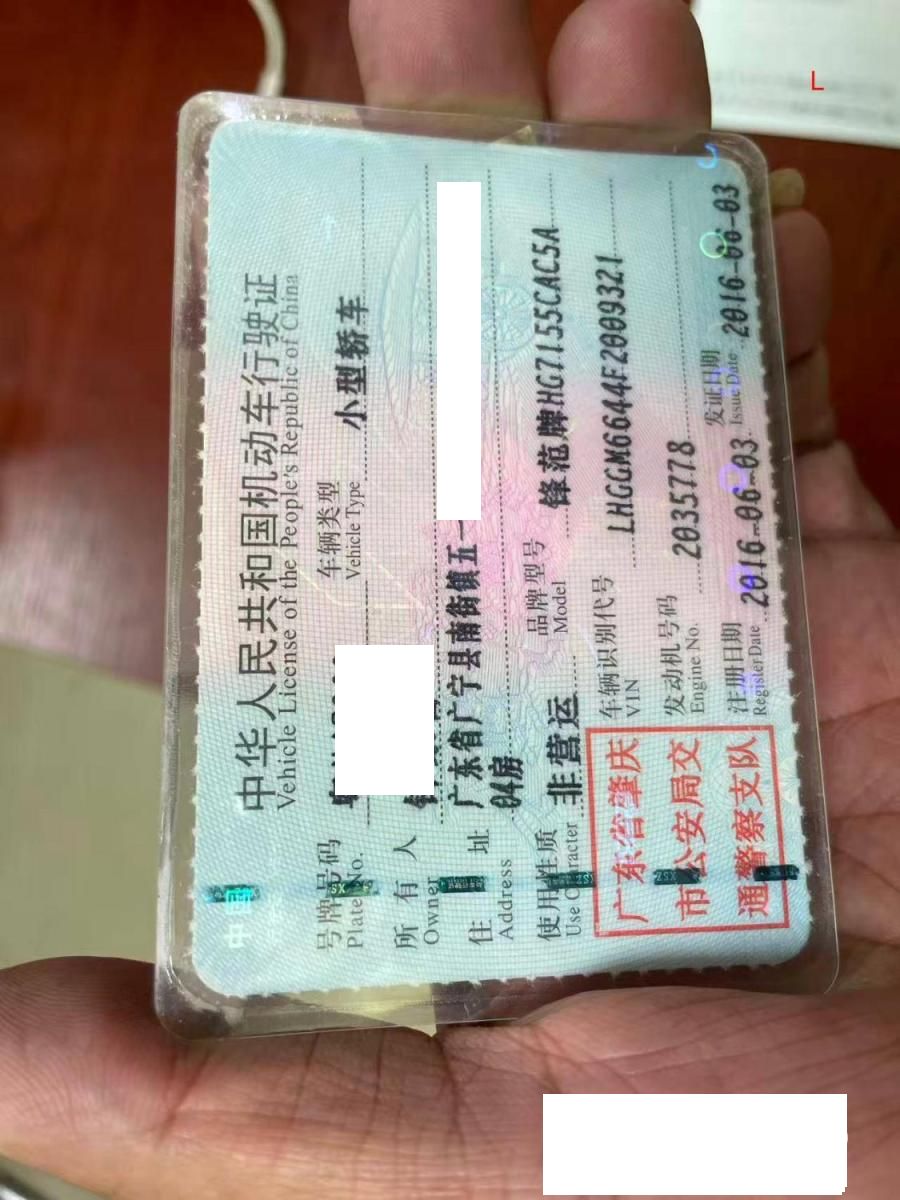 车牌号 粤****** 品牌 本田
