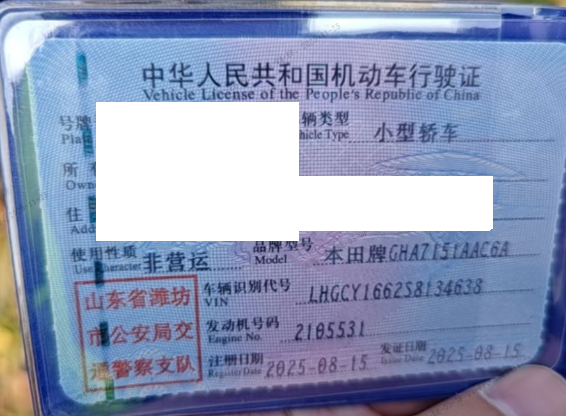 初次登记日期 2025-08-15 车辆名称 本田 雅阁
