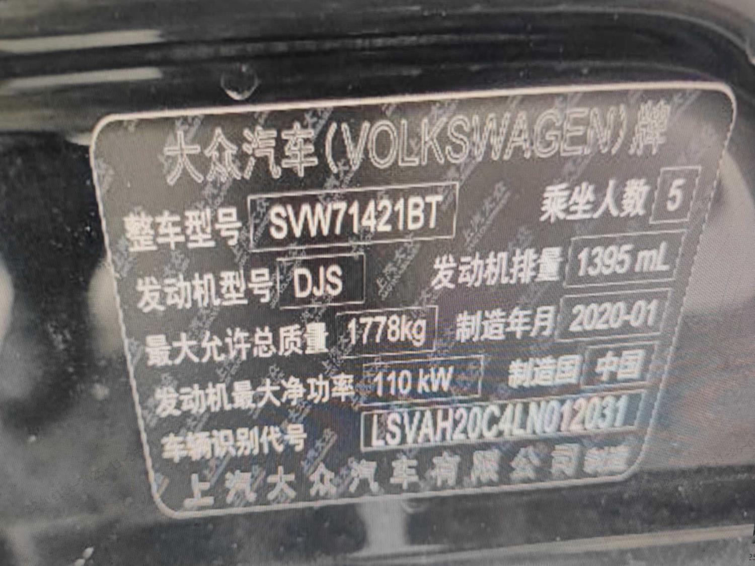底盘号码 LSVAH20C4LN012031 变速箱类型 自动