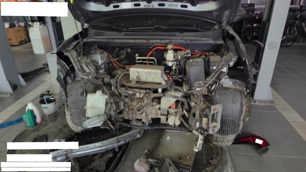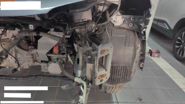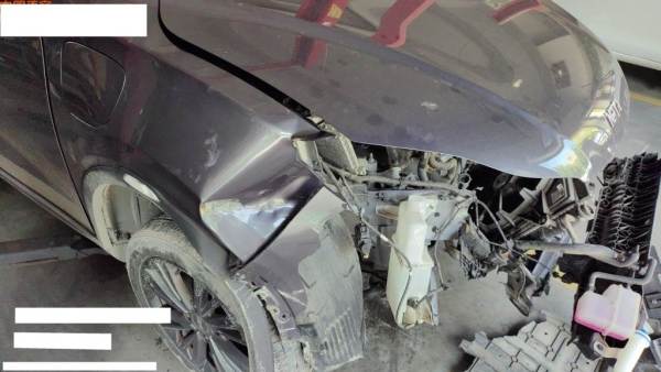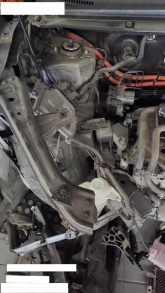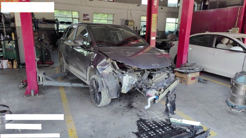 申请,正前受损,车辆左右纵梁中度受损。