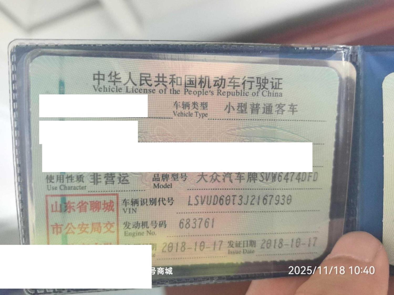 车牌号 鲁****** 品牌 大众