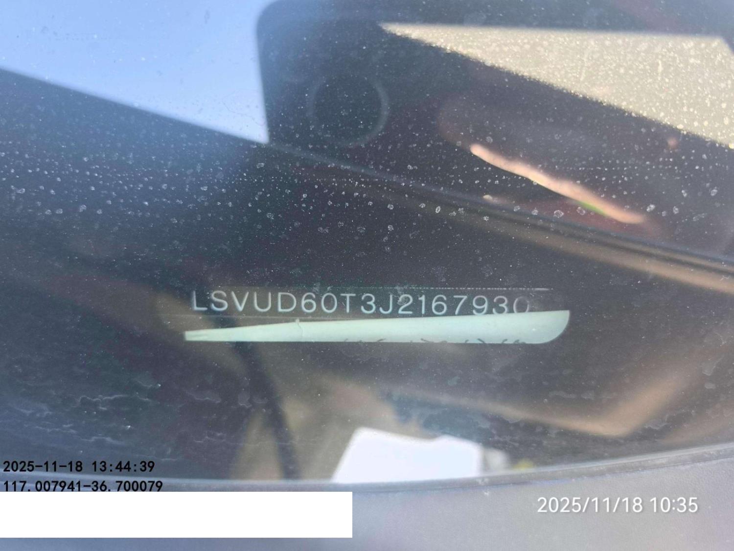 底盘号码 LSVUD60T3J2167930 变速箱类型 自动