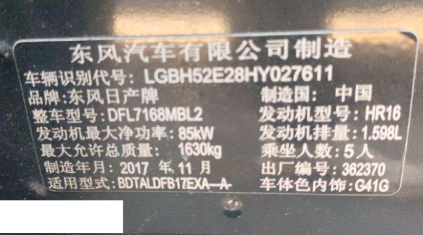 初次登记日期 2017-12-19 车辆名称 日产 轩逸