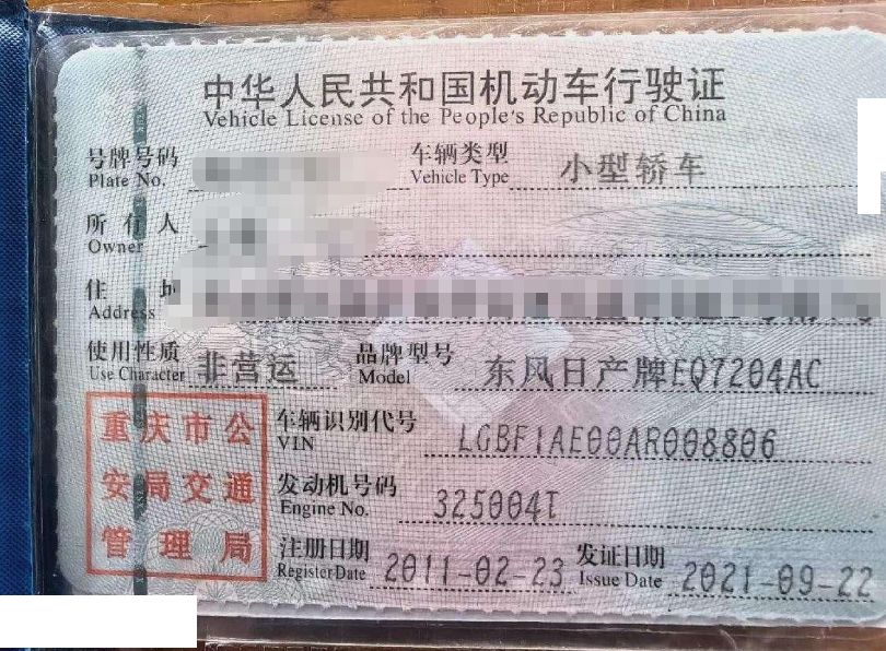 车牌号 渝****** 品牌 日产