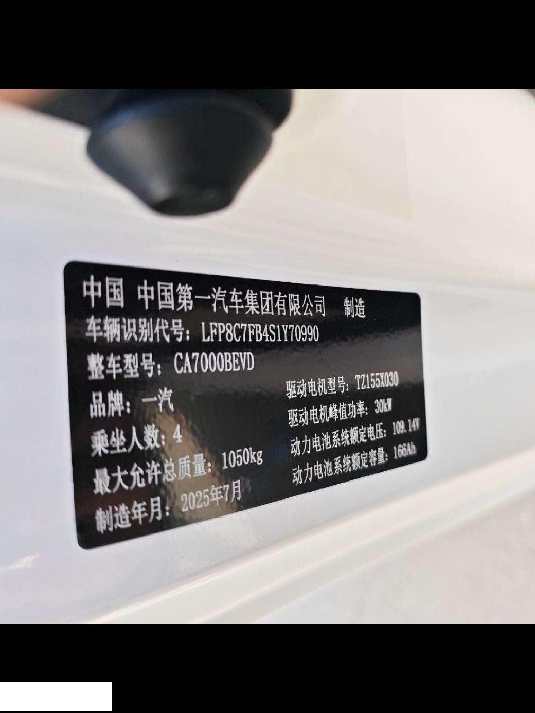 底盘号码 LFP8C7FB4S1Y70990 变速箱类型 自动