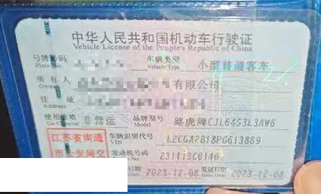 车辆归属地 江苏省南通市 车辆停放仓库 江苏省南通市
