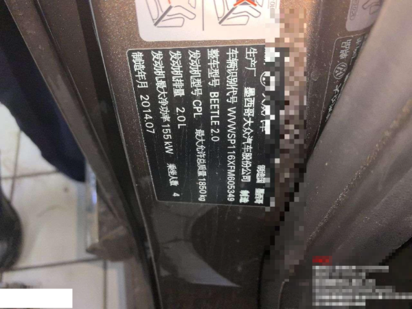 初次登记日期 2014-11-06 车辆名称 大众 甲壳虫
