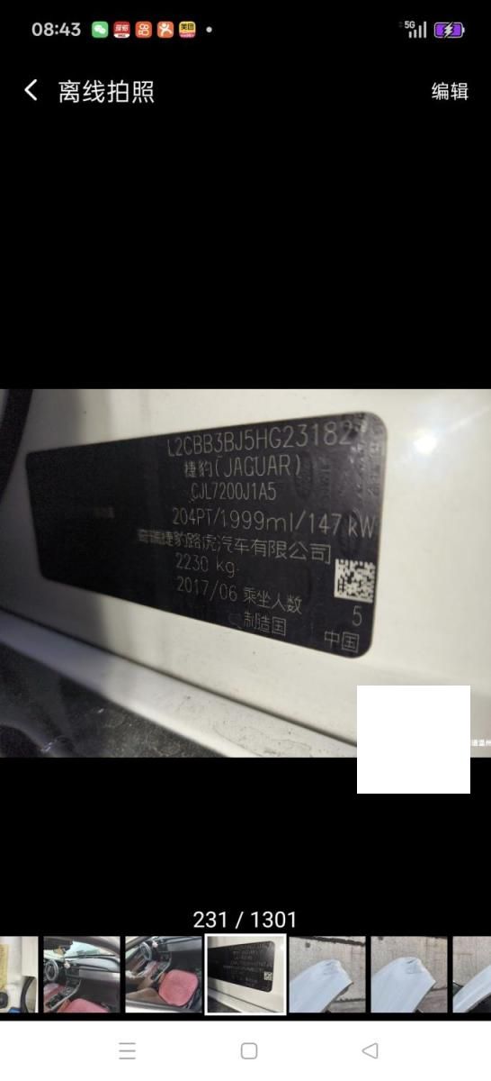 初次登记日期 2017-09-21 车辆名称 捷豹牌