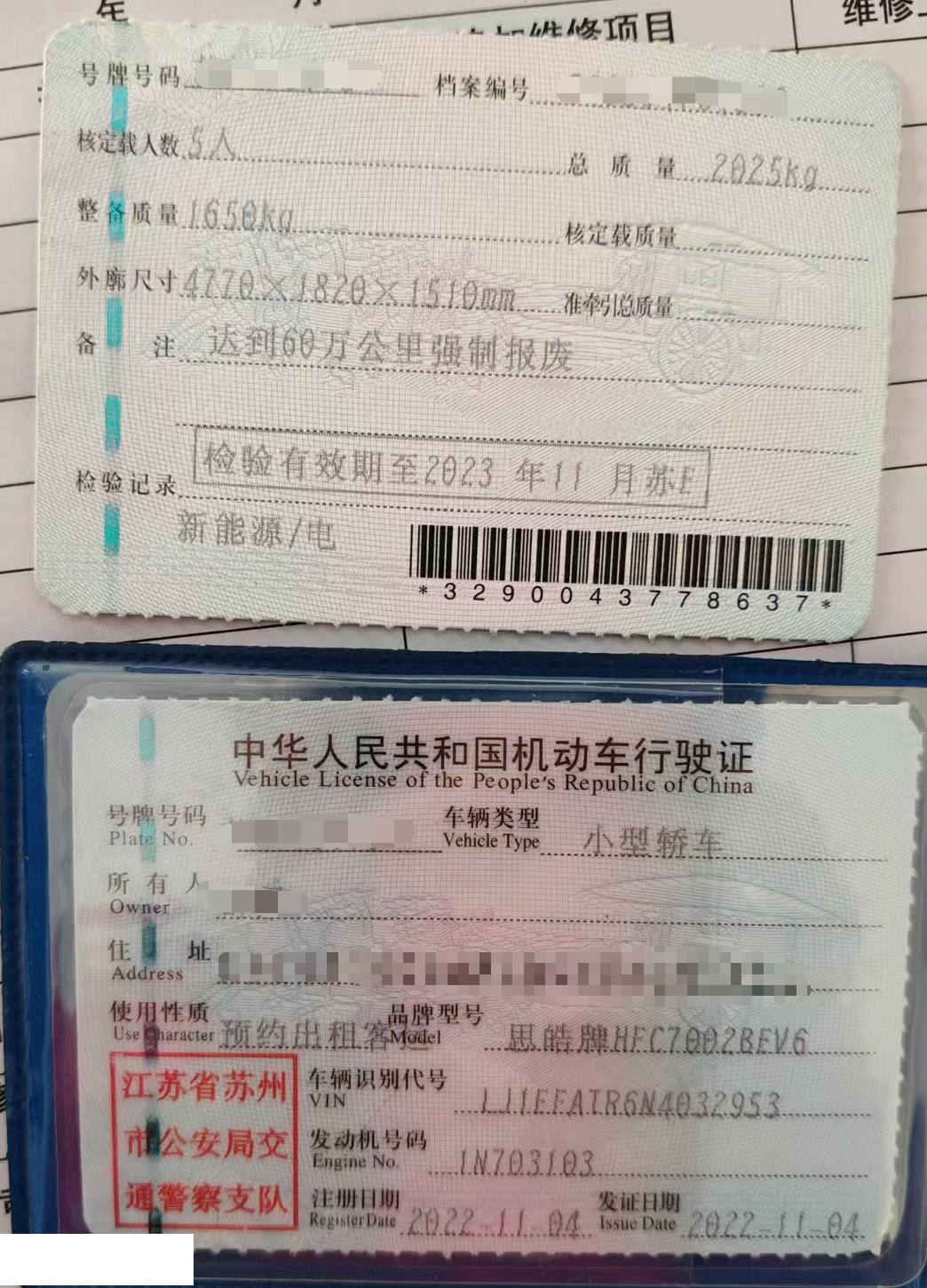 车辆归属地 江苏省苏州市 车辆停放仓库 上海