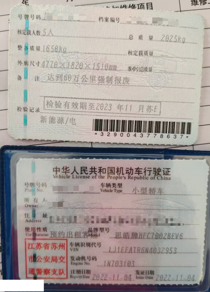 车架号是否受损 未知 使用性质 预约出租客运
