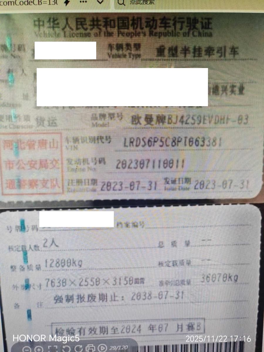 初次登记日期 2023-07-31 车辆名称 欧曼牌
