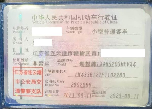 初次登记日期 2023-08-11 车辆名称 理想汽车 理想