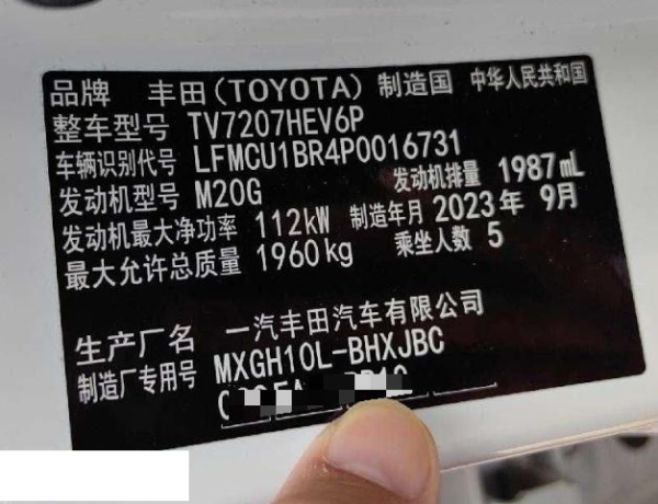 初次登记日期 2023-12-05 车辆名称 丰田 卡罗拉锐放