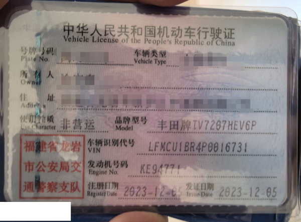 车辆归属地 福建省龙岩 车辆停放仓库 福建省龙岩